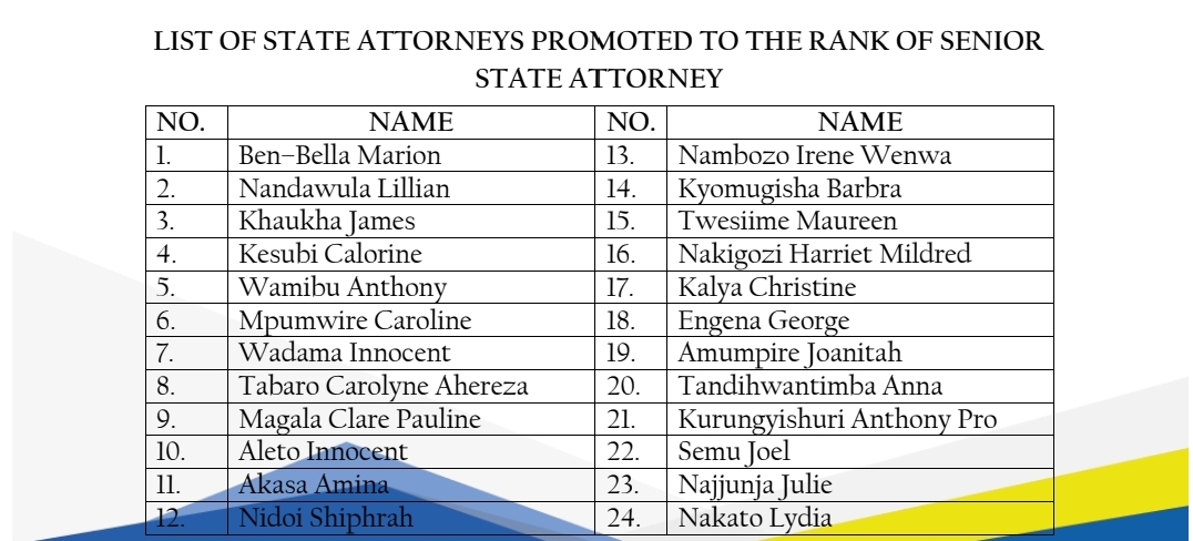 These attorneys had diligently served as State Attorneys for over 8 years. It is envisaged that the promotions will motivate the promoted staff and enhance prosecution service delivery.