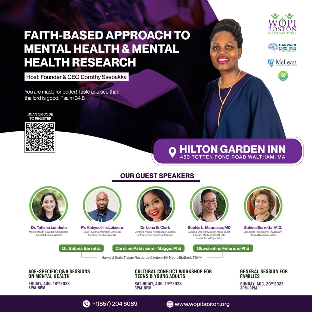 The much anticipated Faith –Based Approach to Mental Health & Mental Health Research conference is scheduled for August 18th -20th 2023 at Hilton Garden Inn 450 Totten Pond Road ,Waltham Ma,United States where several speakers and experts will share insight about Mental health.