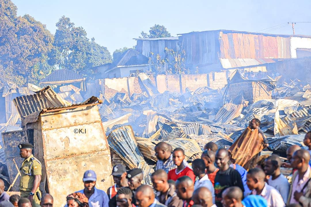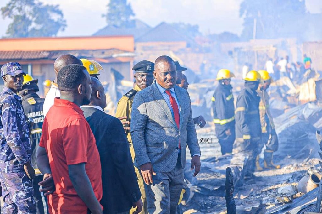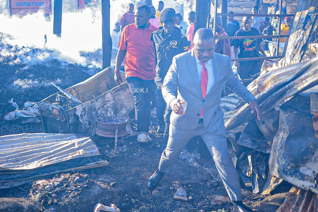 Flanked by the Area MPs and authority Councilors among other local Leaders, Lukwago was told by the market leaders how the incident happened, revealing that the fire surged from some wooden structure and spread to other adjoining shops, including homes and razed them down.