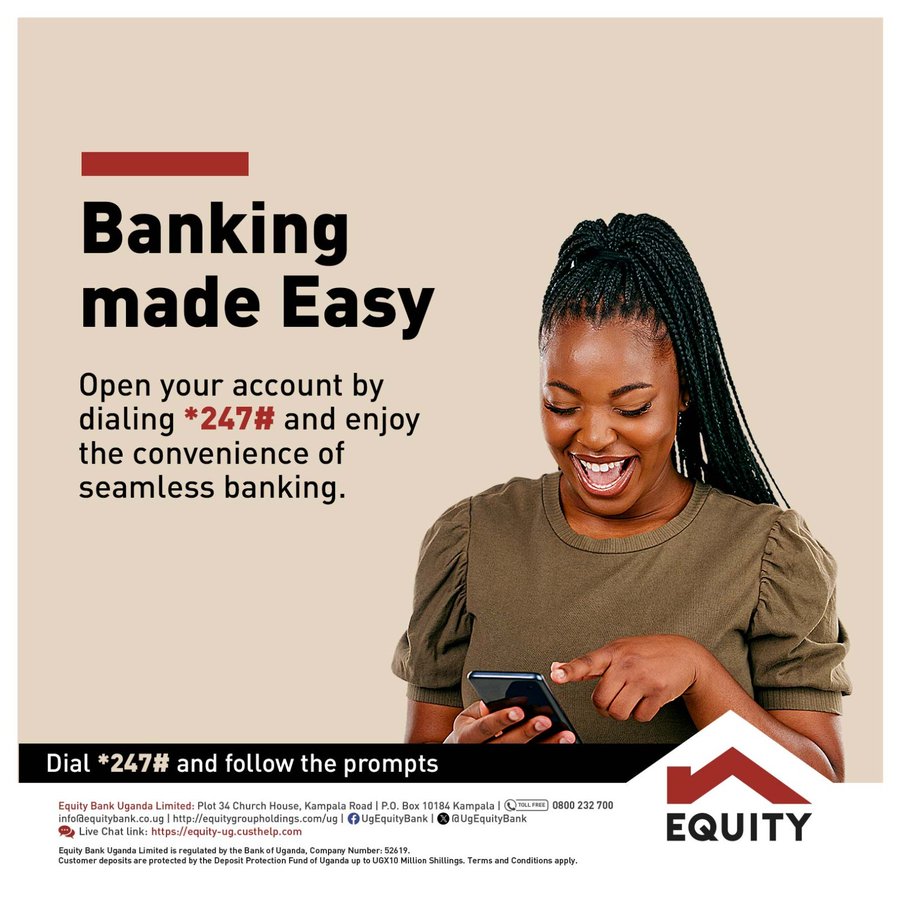 Banking just got a whole lot easier! Open your Equity Bank account in minutes by simply dialing *247#. Enjoy seamless banking from the comfort of your phone.