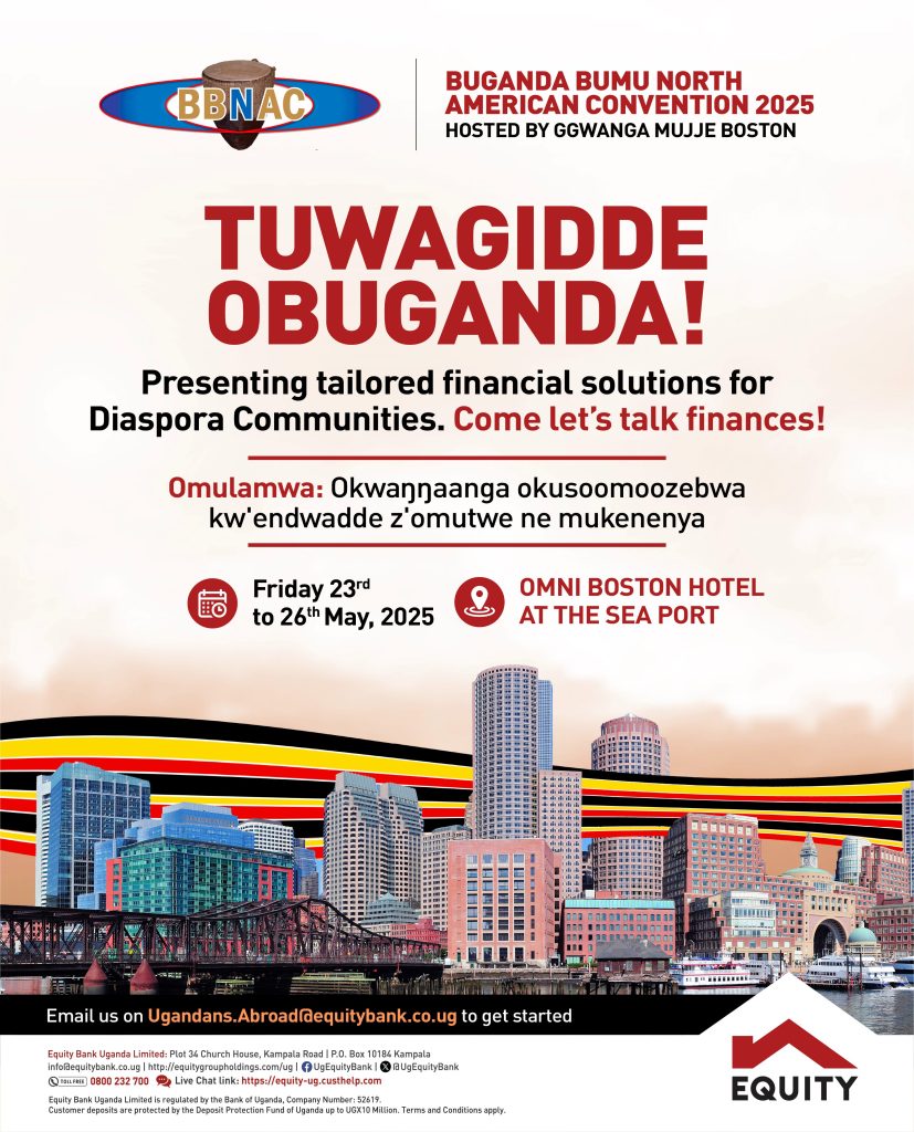MAY 21st 2025 : Boston, USA -Equity Bank Uganda has announced its participation in the highly anticipated Buganda BUMU North America Convention 2025, set to take place from May 23rd to 26th at the Omni Boston Hotel at the Seaport.