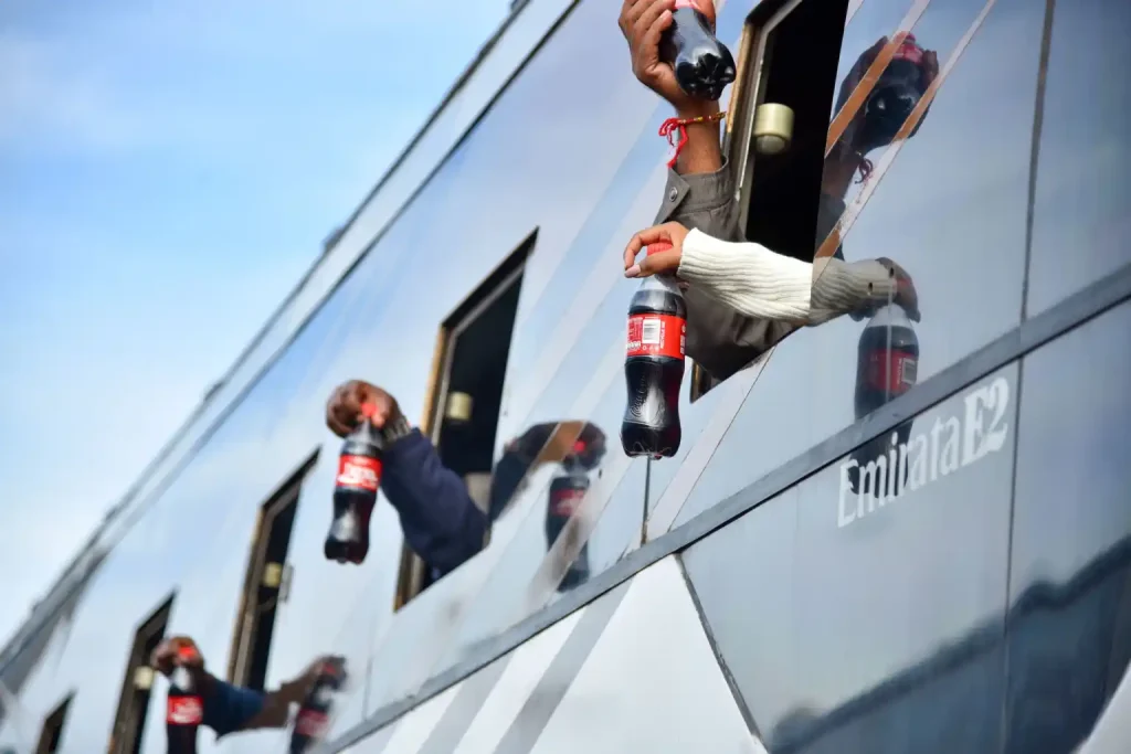 As part of the activation, Coca-Cola shared personalized soda bottles with passengers boarding various buses, including those headed to Kenya, Gulu, Juba, and Somalia. Buses operated by Bebeto and other companies participated in the initiative.