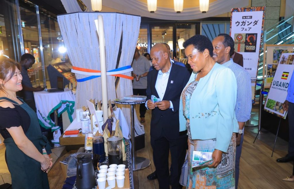 The Minister of State for Trade, Hon. Gen. Mbasu Mbadi, accompanied by Uganda’s Ambassador to Japan, H.E. Tophace Kaahwa, visited the Uganda product promotion venue at Lucua Business Center in Osaka City today to acquaint himself with the various activities being undertaken to show-case Uganda’s products and attract market interest from Japan.