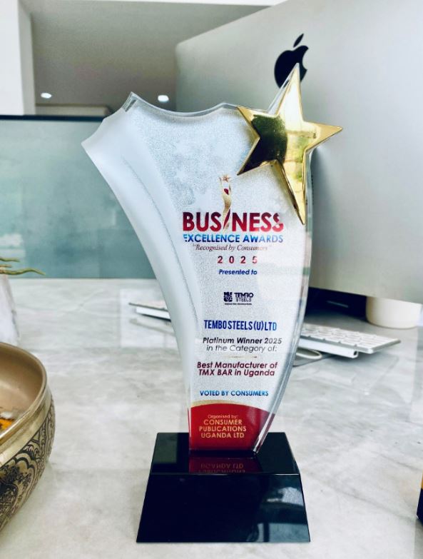 ‘’Tembo Steels shines as the Platinum Winner 2025 for Best TMX Bar Manufacturer in Uganda at the Business Excellence Awards. Thank you to our customers for your trust and support. Together, we’re building a stronger Uganda with quality and innovation’’, said Tembo steels Ltd officials.