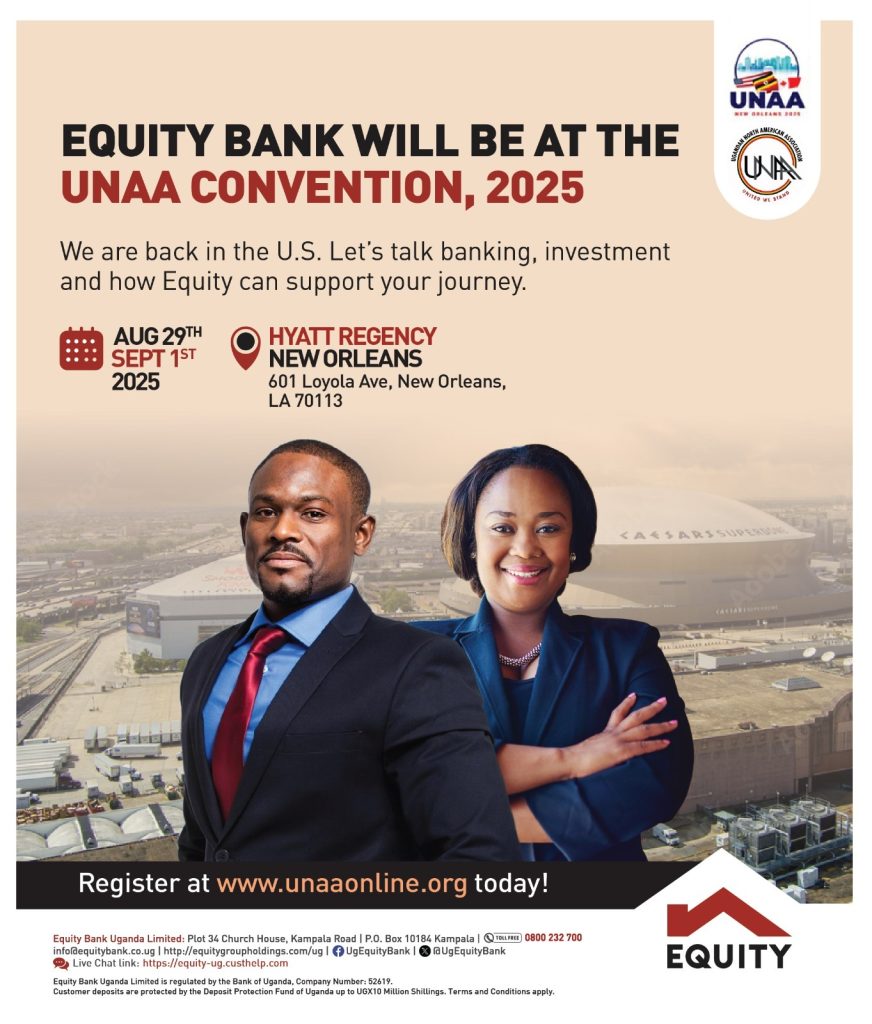 Equity Bank is set to showcase its diaspora services at the Uganda North America Association Convention slated, which opens tomorrow in New Orleans. The annual gathering brings together Ugandans living abroad, policymakers and business leaders to explore opportunities for investment, networking and community development.