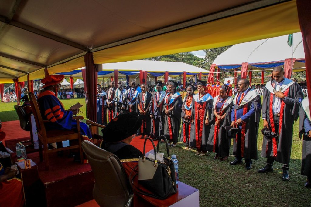 The awards conferred included: · Doctor of Philosophy (PhD): 3 · Master’s Degrees: 53 (15 females, 38 males) · Postgraduate Diplomas: 32 (11 females, 21 males) · Bachelors: 753(433 Males,320 Females) · Diplomas: 201(108 Males, 93 Females) · Certificates: 75 (43 females, 33 males) Unveiling the Mechanical Engineering Workshop In his keynote address, the Chief Guest Rt. Rev. Moses Banja urged the graduates to remain vigilant and steadfast in faith as they navigate the challenges beyond campus.
