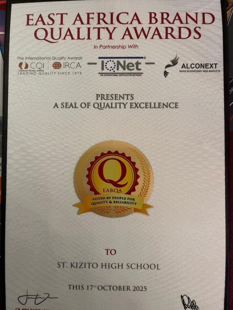 St. Kizito High School Namugongo , a learning institution known for integrating practical skills into its curriculum, beyond traditional academics with focus on green skills and sustainable solutions to global challenges has been awarded at the prestigious East Africa Brand Quality Awards (EABQA) 5th Edition under the Best Scientific-Innovative Secondary School category.