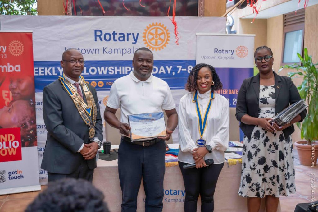 The certificate in appreciation of UCAA’s support to the club in the financial year 2025/26 was handed over by the Rotary District Governor, Mr. Geoffrey Martin Kitakule, witnessed by the President Rotary Uptown Club Ms Immaculate Nakyeyune.