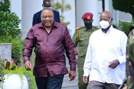 Mr. Kenyatta, who arrived in Uganda last Saturday, is the facilitator of the DRC Peace Process. During the meeting, President Museveni received a report of the status of the peace process.